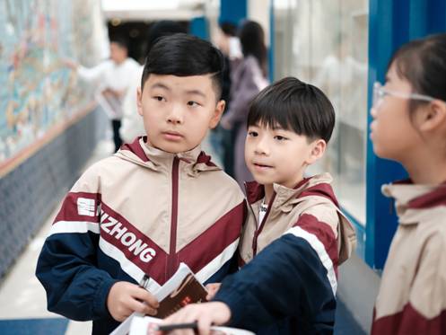 來自永嘉慧中公學小學部五(4)班的20多位同學,也在班主任李蒙潔的帶領下前來參觀唐卡長卷。同學們拿著班級自製的研學手冊,分組在唐卡展示區進行各自的“探索”,完成任務。李老師表示,得知唐卡長卷要來溫州的消息後,就打算把參觀活動當成一次校外實踐課來開展。這是一次讓孩子們沉浸式體驗非遺的非常好的機會。