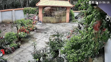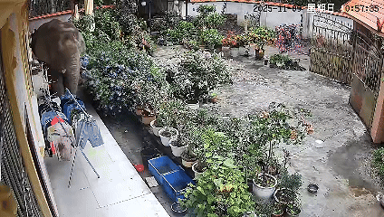 一頭野生亞洲象用鼻子撞開鐵門進到農戶家中