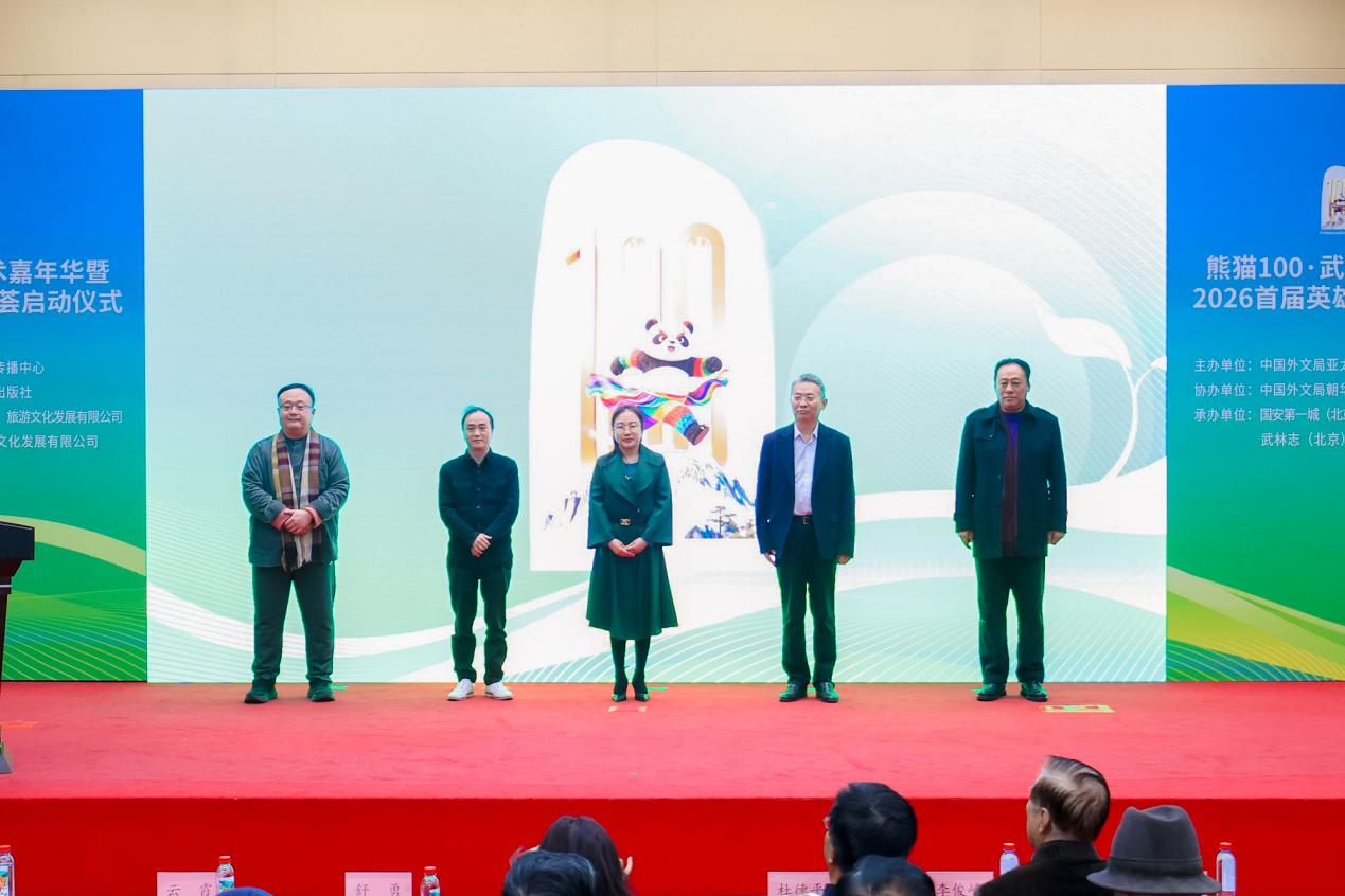 2025年11月15日,中國外文局報告廳內星光熠熠、武韻澎湃。一場融合國寶熊貓與中華武術的文明盛宴在此拉開帷幕——“熊貓100•武術嘉年華暨2026首屆英雄薈”啟動儀式隆重舉行,並通過學習強國等權威平臺進行直播,讓海內外觀眾雲端共賞。來自文化、體育、傳媒等領域的200余位嘉賓齊聚一堂,共同見證這一具有里程碑意義的文化傳播盛事啟航。