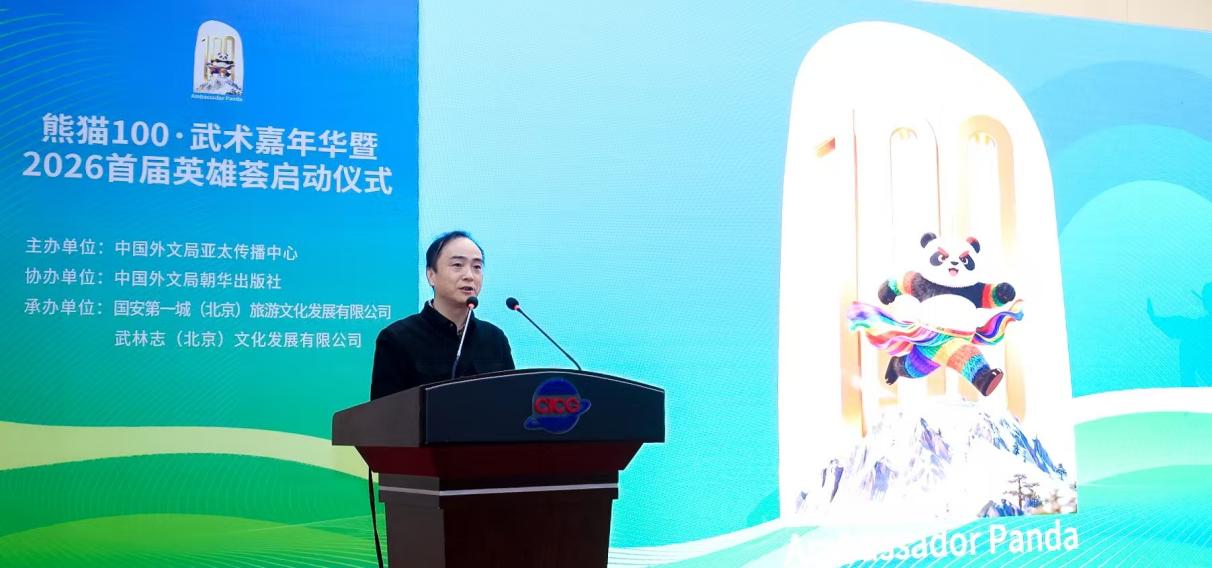 中國外文局亞太傳播中心總編輯趙珺在致辭中表示:“‘十五五’規劃建議明確提出“文化繁榮興盛是中國式現代化的重要標誌”。中國外文局亞太傳播中心發起舉辦“熊貓100•武術嘉年華暨2026首屆英雄薈”活動,創新融合熊貓與武術兩大文化標識,旨在搭建一個集體育競技、文化展示、産業合作與國際交流於一體的綜合性平臺,希望能夠實現三大願景:一是以武術為橋,弘揚中華優秀文化,彰顯人類共同價值;二是以熊貓為媒,構建國際交流新平臺,增進理解與認同;三是以內容為根,打造武術傳播新生態,拓展影響邊界,推動武術文化國際傳播邁入新階段。