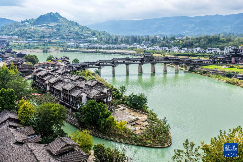 這是10月30日拍攝的濯水古鎮和風雨廊橋景色(無人機照片)。