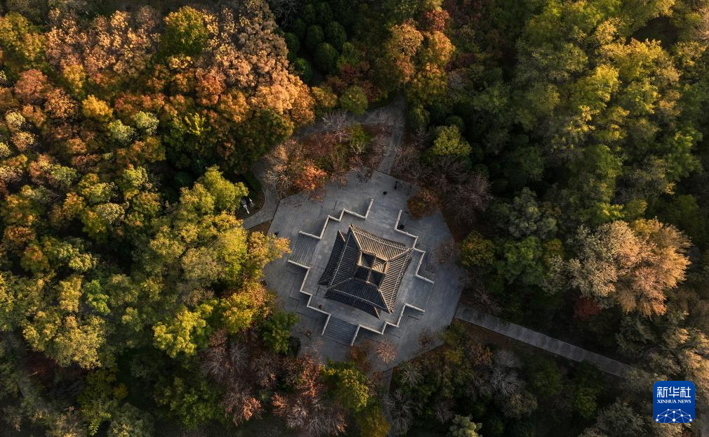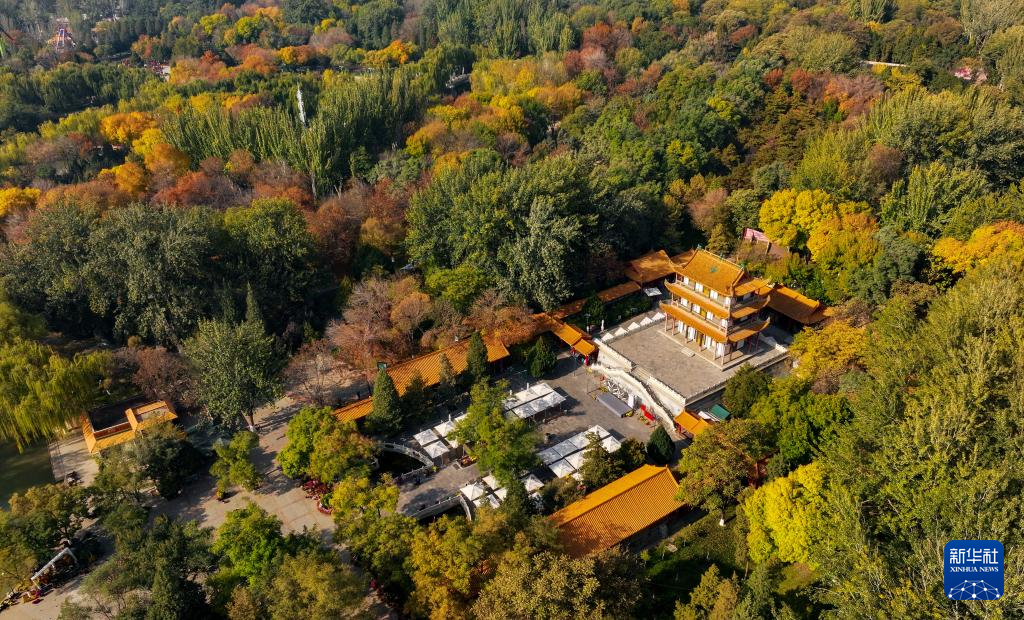 這是10月27日在銀川市中山公園文昌閣拍攝的秋景(無人機照片)。