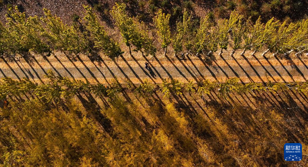 這是10月28日在銀川市典農河畔拍攝的秋景(無人機照片)。