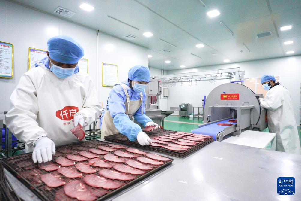11月11日,工人在仟戶牧場的加工車間製作零食産品。