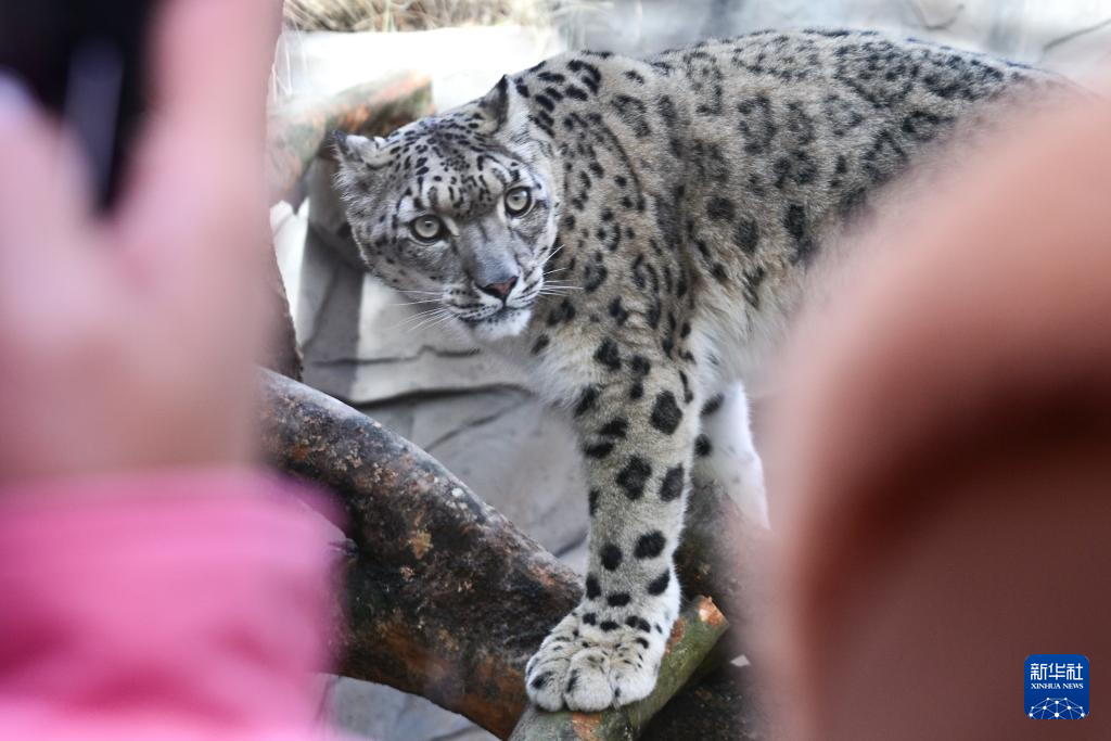 11月15日,在青海省西寧野生動物園,遊客與雪豹互動。