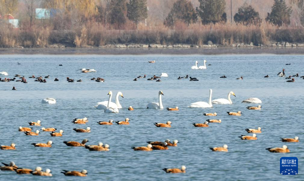 入冬以來,大批候鳥陸續飛抵位於甘肅省張掖市的張掖黑河濕地國家級自然保護區高臺段休憩覓食。作為全球9條候鳥遷徙通道之一的中亞通道的重要轉机站,每年約有18萬至25萬隻水禽在張掖黑河濕地國家級自然保護區集結、停歇。