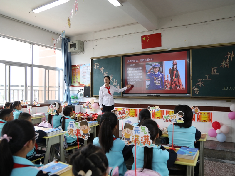 師宗縣丹溪小學開展主題豐富、形式多樣的勞動教育“開學第一課”。五年級(3)班的教室裏氣氛熱烈,一場別開生面的“聆聽勞模故事•傳承工匠精神”少先隊主題活動正在進行。老師結合雲南省消防救援總隊曲靖支隊特勤中隊一級消防長董永山的感人故事,深入淺出地向同學們闡述勞動的價值與魅力,讓同學們近距離感受榜樣的風采與力量。