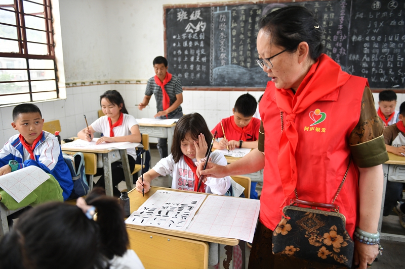 近年來,雲南省紅河州瀘西縣銀發志願者紛紛走進校園,發揮特長優勢,以多種方式開展“大手牽小手”關愛少年兒童志願服務活動,為呵護少年兒童健康成長貢獻銀發力量。