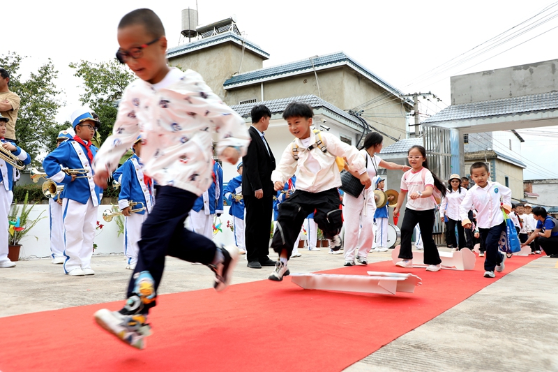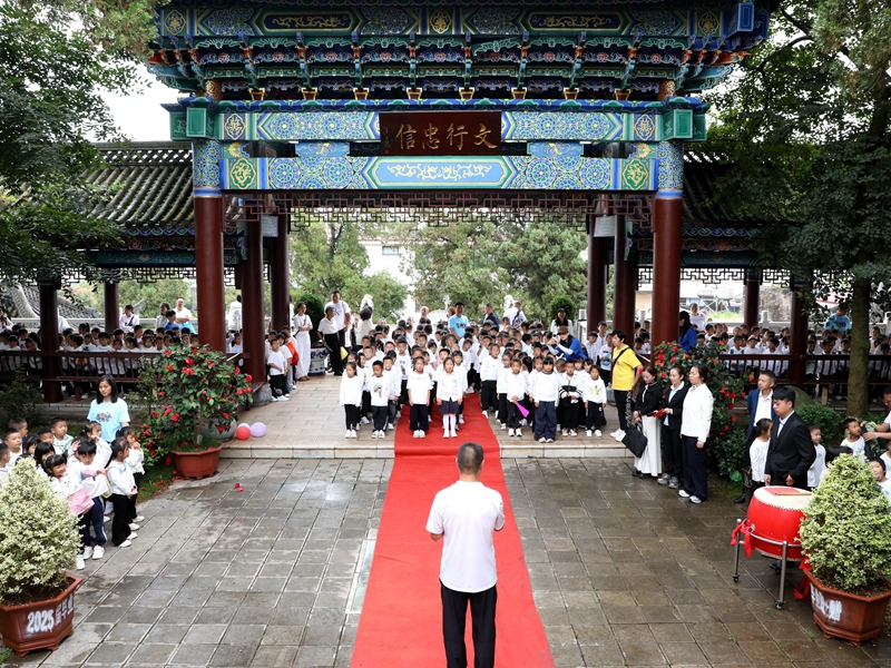 晨曦微露,師宗縣丹鳳完全小學的校園已是一片歡騰。禮拜孔子、擊鼓明志、輕點硃砂……該校每年都會舉辦別出心裁的一年級新生入學儀式,通過課程融合、實踐體驗、文化浸潤、綜合評價等方式,構建德智體美勞有機融合的育人體系,實現學生全面發展。