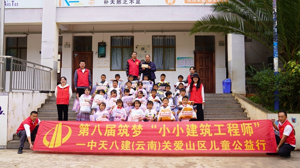 在過去的七年裏,中天建設集團有限公司第八建設公司(以下簡稱“中天八建”)每年都如期前往雲南省昆明市祿勸縣翠華鎮湯郎箐小學開展“築夢小小建築工程師”公益課堂。如今已經邁入第八個年頭,10月31日,又迎來了今年中天八建志願者們和孩子們相約見面的日子。在共聚的時光裏,一起拆開注滿志願者心意的禮物,開啟“小小建築工程師”趣味課堂。