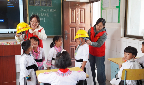 中天八建黨支部書記趙楊彬介紹:“今年中天公益慈善的主題是‘公益在身邊’,三十一年以來中天在全國各地用行動,傳達中天慈善的真心、真誠、真實。最初走進湯郞箐小學,當時學校共有56名學生,今年是第八年,目前學校學生數量為28名,雖然人數在逐年下降,但我想這些留下來的孩子就是我們堅持開啟課堂的初衷。關注那些更需要的人群,通過我們的職業視角帶著孩子們看一看,聊一聊。以建築課堂為媒介,在孩子的意識裏勾勒建築工程師這份職業,鼓勵他們去了解世界的繽紛多彩,為未來夢想啟航點亮微光。”