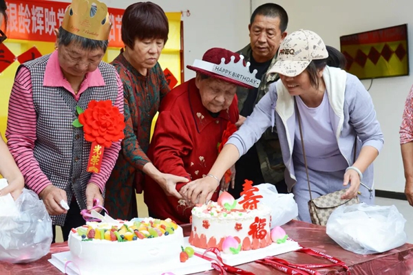 在全場人員齊唱《生日快樂》的歌聲中,市、縣、鎮三級領導為80歲以上老人們戴上了象徵榮譽與祝福的紅花,並遞上慰問品,現場響起了陣陣掌聲與歡笑聲。紅花映著老人花白的頭髮,顯得格外醒目,也象徵著對老人們歲月奉獻的敬意。“這是我過得特別有意義的一個重陽節,有榮譽、有歡樂、更有家的溫暖。”80多歲的老黨員魯玉花在切蛋糕時笑容滿面地説。