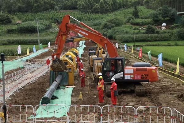“轟隆隆……”寬闊的作業帶上,幾臺挖掘機正在施工,巨大的溝槽逐漸成型,兩側整齊地堆放著防護用的材料和即將鋪設的管道。自2024年8月開工建設以來,這項工程綜合進度已超50%,焊接里程突破263公里,預計2026年全面建成具備投産條件。屆時,將全面實現“桂氣入滇”。