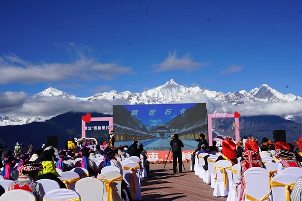11月11日,“情定雲南•相約梅裏”旅行婚禮首選目的地迪慶推介會,在德欽縣梅裏雪山飛來寺觀景平臺如期舉行。
