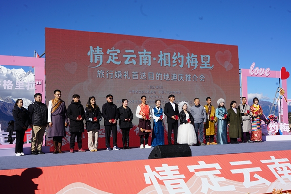 迪慶州旅遊集團、州開發投資集團,以及迪慶假日旅行社、麗世酒店等先後進行婚禮線路和産品推介。活動現場,與會主要嘉賓還為多對新人舉行了集體頒證儀式,將浪漫氛圍推向高潮。