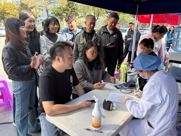 “請先填寫健康徵詢表,測量血壓後到這邊初篩。”活動現場,雲南昆明血液中心的醫護人員耐心引導,昆明移動的員工們有序完成資訊登記、健康檢查、血液檢測等環節。