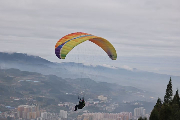 近年來,個舊市積極推動“體育+旅遊”産業融合,通過承辦高水準航空運動賽事,持續提升城市品牌影響力,助力體育産業與文旅經濟協同發展。老陰山滑翔場地憑藉優越的地理條件與穩定的氣流資源,已成為國內知名的滑翔傘賽事舉辦地。