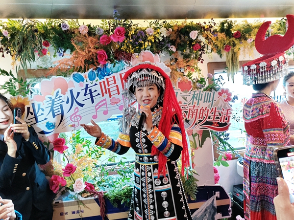 此次“坐著火車唱民歌”文旅主題推廣,串聯起雲南省會城市昆明和紅河哈尼族彝族自治州蒙自市,列車上,紅河、文山、昆明、西雙版納、玉溪、普洱、大理、楚雄等州(市)先後推出了《永遠的諾瑪阿美》《三七謠》《小乖乖》《讓我聽懂你的語言》等地方特色經典民歌,通過民歌演唱與旅居目的地介紹相結合的方式,營造沉浸式文旅體驗氛圍,吸引旅客感受雲南民族文化和來雲南旅居的獨特魅力。