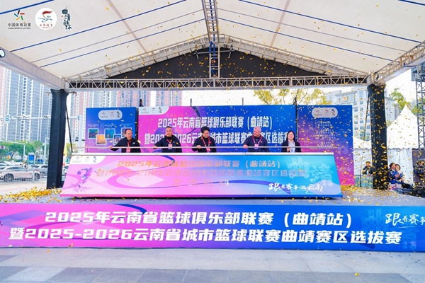 11月23日,2025年雲南省籃球俱樂部聯賽(曲靖站)暨2025-2026雲南省城市籃球聯賽曲靖賽區選拔賽開幕式在曲靖市萬達廣場舉行。來自曲靖9個縣(市、區)及經開區的10支代表隊、20支俱樂部三人制球隊,與現場數百名觀眾共同見證賽事啟動。
