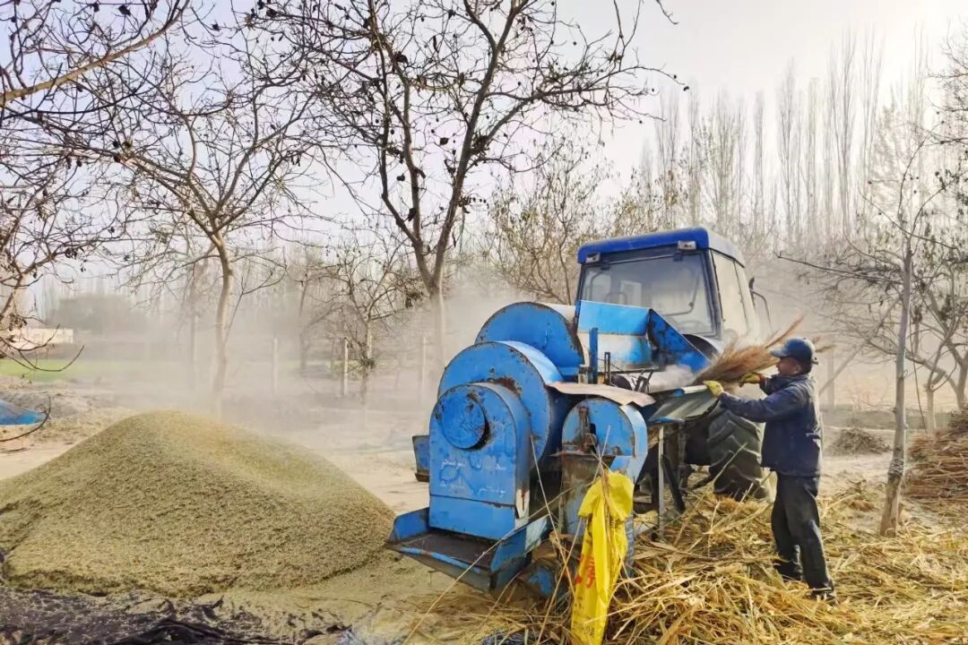 冬日的于田縣斯也克鄉克提其村,田間地頭機械轟鳴作響。一捆捆玉米稈、萬壽菊秸稈、蘆葦稈以及落葉被源源不斷地送入粉碎機,轉瞬之間便化作了細碎的飼料原料。這個冬天,克提其村巧妙盤活農作物廢棄物,讓曾經令人頭疼的“生態包袱”搖身一變,成了牛羊的“營養餐”,成功走出了一條生態與經濟雙贏的鄉村振興新路子。