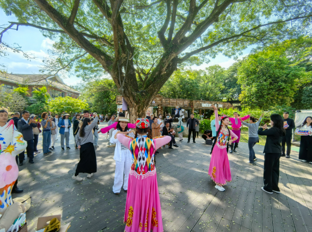 初冬的西雙版納傣族自治州依然溫暖如春。11月25日,熱帶花卉園內百花爭艷、遊人如織。一陣歡快的手鼓聲倏然響起,幾位身著新疆民族服飾的演員翩然起舞,“絲路古龜茲神奇阿克蘇”主題路演在此拉開帷幕。