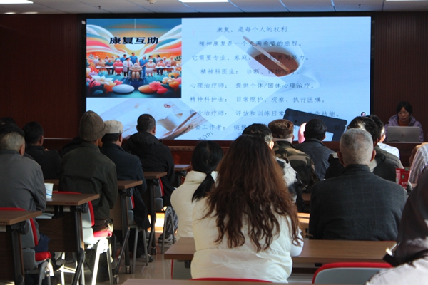 培訓伊始,醫護人員、特邀授課老師分別圍繞《殘疾人自助互助康復相關政策解讀及意義》《精神康復護理知識》等內容授課,為患者康復和家庭護理提供了堅實的技能支援。