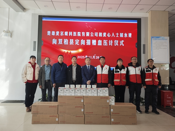 11月28日,楚雄愛爾眼科醫院踐行社會責任,聯合愛心人士向雙柏縣紅十字會捐贈價值1萬元的血壓計,以實際行動助力基層醫療健康服務升級,為縣域群眾健康保駕護航。