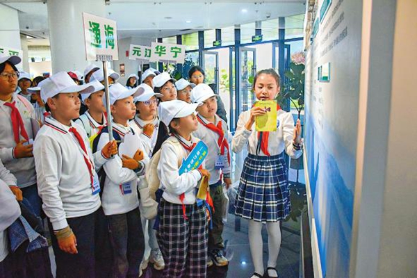 在“行”的環節,“小手拉大手”家庭環保行動全面鋪開,産生了聯動效應。孩子們紛紛化身“環保監督員”,認真督促家長使用菜籃子代替塑膠袋、仔細記錄家庭用水量、踴躍參與社區垃圾分類活動。在雲南江川星雲湖國家濕地公園,由學生組成的“紅領巾巡湖隊”,沿著湖畔清理垃圾,實地觀察入湖河道水質情況;澄江市規劃館裏,學生講解員用清晰的聲音,向遊客介紹撫仙湖“湖泊革命”的歷程;玉溪市科技館裏,“小小星火”紅領巾講解員熱情地向參觀者介紹環保科技展品,分享生態環保知識,從節水節電的小發明到資源迴圈利用的新創意,讓大家深刻認識到科技在環保中的重要作用。