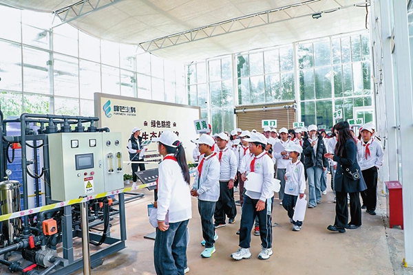 峨山縣採取“卡通圖片+動畫短片”的創新形式,讓同學們直觀地了解什麼是農業面源污染以及應對方法。同時,還結合峨山本土農業場景,運用黃板(誘殺蚜蟲、粉虱)、藍板(誘殺薊馬)等農業綠色防控常用工具,充分調動課堂氣氛,讓同學們更直觀地感受農業綠色防控的重要性,激發學生對生態保護的濃厚興趣。“我帶著同學們一次次參加生態環保主題活動,大家從最初單純的遊覽觀賞,漸漸意識到人和生態是休戚與共、緊密相連的,進而慢慢樹立起生態環保理念。”峨山縣帶隊老師範麗在帶領學生到市科技館開展研學活動時説,“當生態保護成為全民的廣泛共識,綠色發展才算真正有了最堅實的根基。”