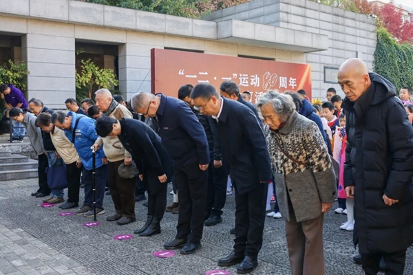 “一二•一”運動四烈士親屬、于再外甥顧寶炎激動地説道:“銘記歷史、緬懷先烈,當年的烈士們犧牲自己,為革命勝利作出貢獻,這一切我們會永遠銘記在心,繼承先烈們的遺志,團結一心,真抓實幹,奮力開創中國式現代化建設新局面。”