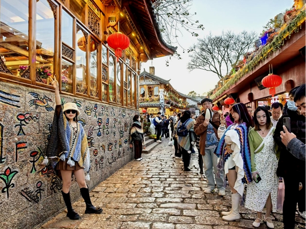 麗江的繁榮與包容,宛如一塊強大的磁石,吸引著來自五湖四海的各民族同胞。2025年1至10月,麗江古城景區累計接待遊客2076.48萬人次,日均接待數6.83萬人,同比增長10.17%。年復一年,人們為心中的“詩和遠方”奔赴而來,在“雪山為屏、活水為城”的麗江,漫步巷道石橋、走進詩禮人家、感受漫卷書香,尋找心底裏最柔軟的故鄉。