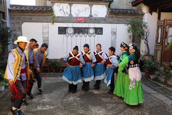 地處大研古城核心區的新義社區,是麗江多民族雜居程度較高的典型社區之一。社區內不僅有新面孔,也有老典型,但和國棟始終是社區“民族語言微課堂”的中堅力量。他用納西語向原住民宣講政策,又用漢語向遊客分享茶馬古道的故事,讓遊客在打跳互動中感受民族融合的溫暖。