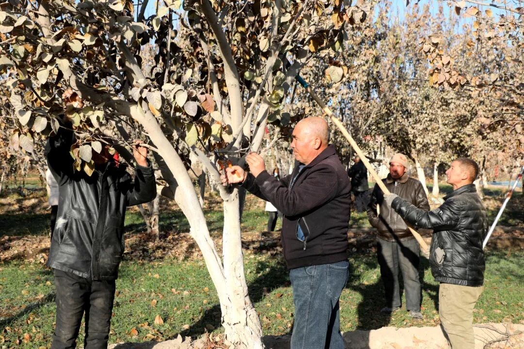 伊什庫力鄉林業站站長如則尼亞孜•圖爾蓀説:“冬季樹木進入休眠期,此時修剪對樹體損傷小,能有效調整樹形、集中養分。我們近期每天巡迴指導,重點落實精細修剪、均衡施肥和徹底清園,降低病蟲害越冬基數,為春季萌芽生長創造良好條件。”