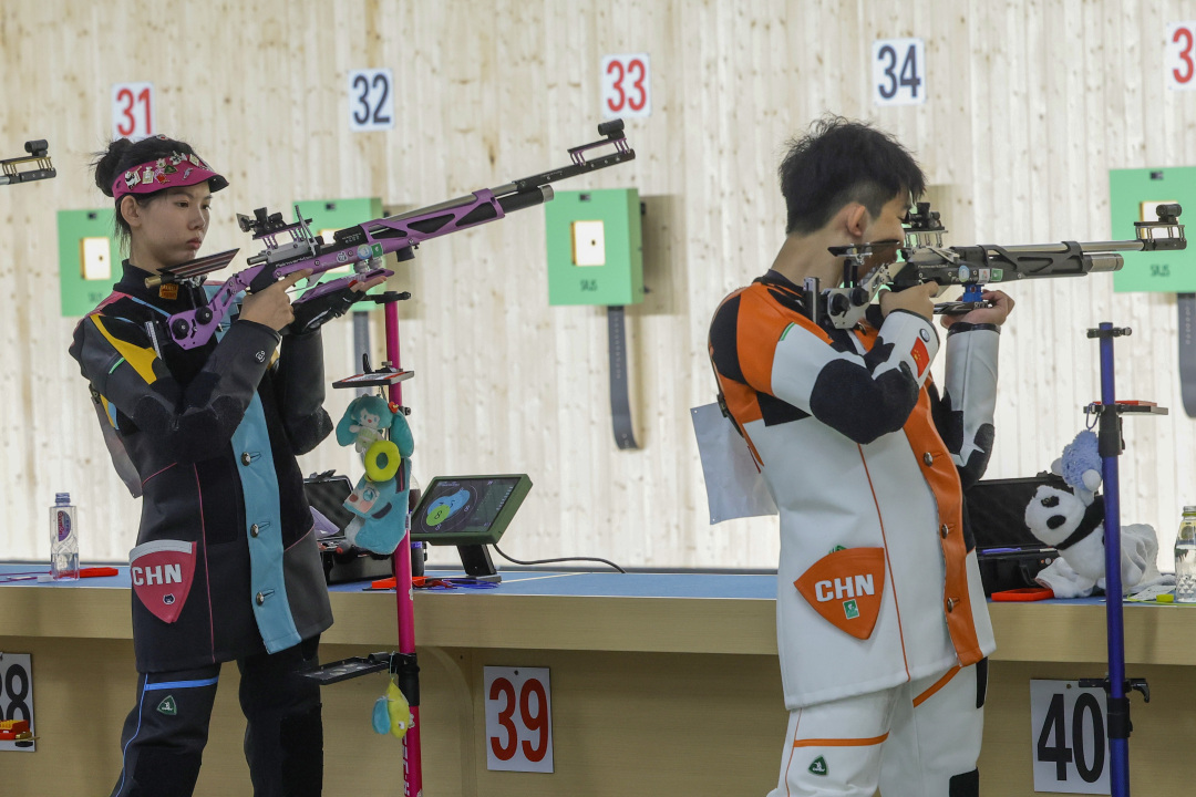 決賽階段,遼寧一隊杜雨宸、劉柏辰和福建一隊張倩穎、林峰展開巔峰對決,遼寧一隊以6比0開局,福建一隊緊追不捨,並在10比14的情況下挽救一個賽點,經過激烈爭奪,遼寧一隊以16比12擊敗福建一隊摘得十五運會射擊比賽首金。