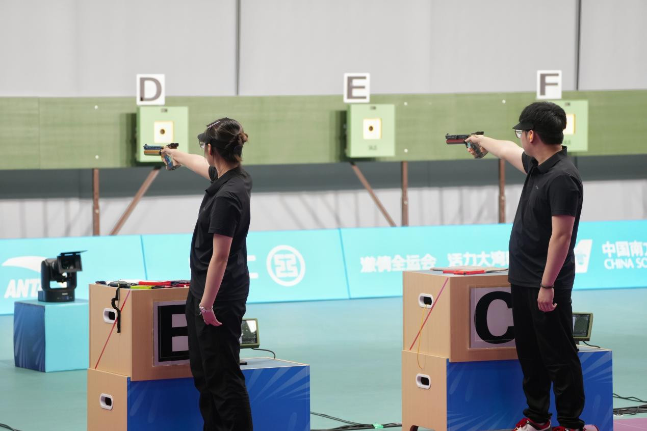 當天最後一場比賽為10米氣手槍混合團體決賽。此前在資格賽中就以592環一鳴驚人、創全國紀錄並超亞洲及世界紀錄的安徽一隊組合胡凱/姚千尋,將火熱狀態延續至決賽舞臺。他們在決賽中以17:9的比分戰勝山東二隊組合馬千珂/田坤正。上海一隊的姜冉馨/吳嘉宇則在銅牌賽中逆轉戰勝湖北一隊,獲得季軍。
