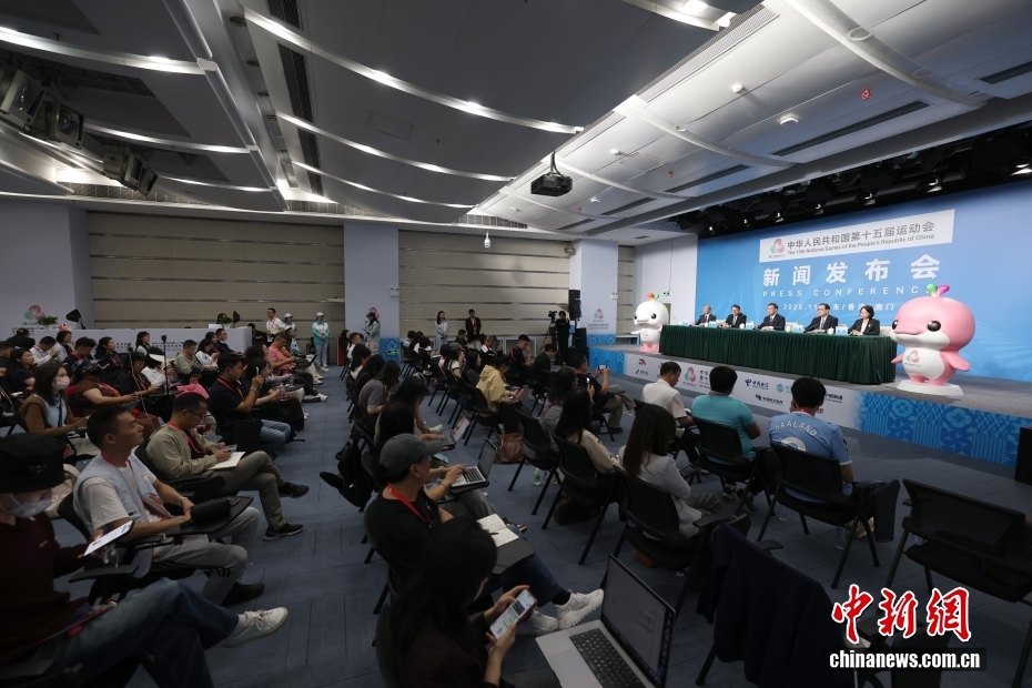 11月8日,第十五屆全國運動會在廣州主媒體中心舉行新聞發佈會,邀請十五運會組委會副主任、國家體育總局副局長李靜,十五運會組委會副主任、廣東省委常委王曦,十五運會組委會副主任、香港特別行政區政府政務司司長陳國基,十五運會組委會副主任,澳門特別行政區政府社會文化司司長柯嵐,介紹賽事組織、賽風賽紀、人文全運、粵港澳三地服務保障等情況,並回答記者關心的問題。中新社記者 富田 攝