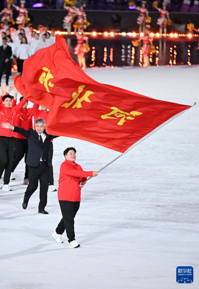 11月9日,河北省體育代表團旗手鞏立姣在入場儀式上。
