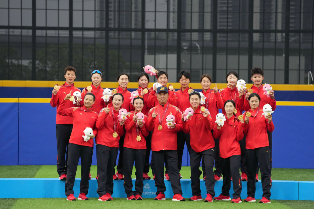 18日,第十五屆全國運動會女子壘球比賽中,江蘇隊和四川隊分別在金牌賽、銅牌賽中擊敗在小組賽曾戰勝自己的對手,站上領獎臺。