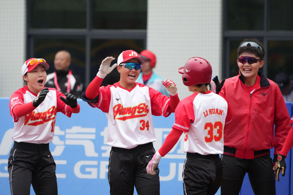 18日的金牌賽,江蘇隊在首局依靠徐佳的本壘打,取得2分領先。但很快就被遼寧隊王舒瑤的一記利落揮棒,追成2:2平。