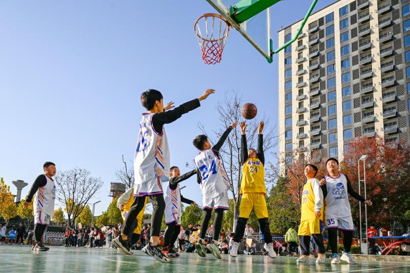 11月25日,在林店街道安慶路第三小學靈溪校區,小學生正在進行班級籃球對抗賽。近年來,該校利用大課間和課後延時服務,組織開展校園籃球運動。通過舉辦趣味籃球運動、校園籃球聯賽等系列活動,讓學生享受體育運動帶來的樂趣,既促進了身心健康成長,又增添了校園活力。(文/史翠雲 廬陽區人民政府)