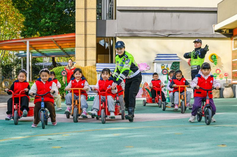 2025年11月28日,在安徽省合肥市廬陽區林店街道雙崗幼教集團悅城分園,小朋友們正在學習交通安全知識。當日,林店街道團工委邀請合肥市公安局交警支隊廬陽大隊的交警走進幼兒園開展“交通安全,從小學起”教育活動,孩子們通過參與交通安全遊戲,體驗交通模擬出行,學習交通法規,樹立交通安全意識,養成安全文明出行好習慣。(廬陽區人民政府)