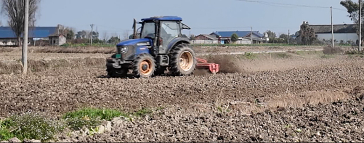 在邛崍桑園鎮童橋村,綠意盎然的麥田上空,植保無人機以精準航線噴灑藥肥,300畝作業僅需3小時至5小時。不遠處,天府糧倉公司的育秧田裏,旋耕機轟鳴作響,120畝土地翻耕平整,為即將到來的水稻育秧做足準備。