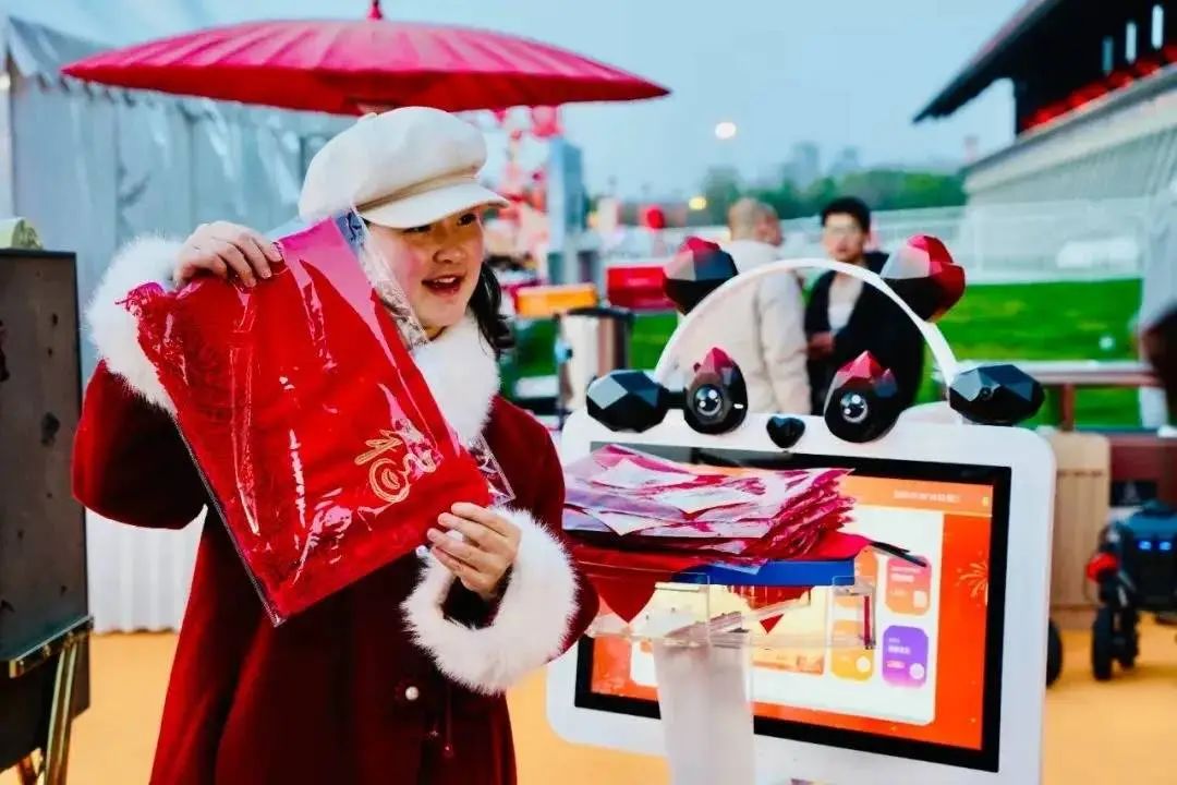 除夕之際,在天府大屋檐下,來自成都人形機器人創新中心有限公司的蓉寶機器人、路引機器人和靈鸮機器人為節日增添科技魅力;興隆湖新春跑活動中,蓉寶機器人和路引機器人為市民提供創新應用與互動體驗,以科技賦能城市發展,營造出智慧進步與節日喜慶交融的濃厚氛圍。