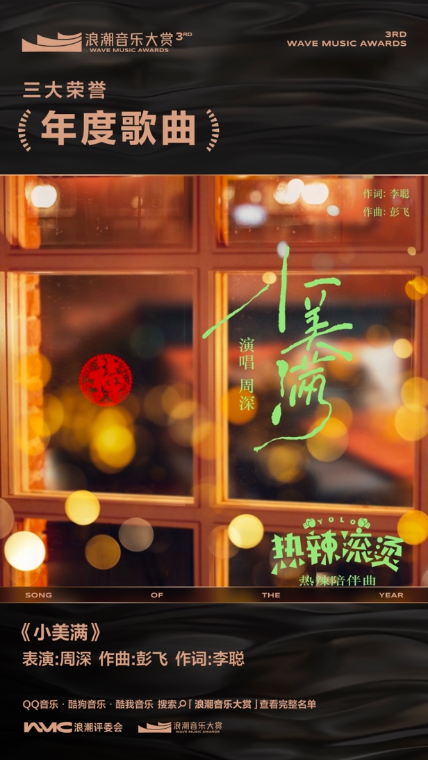 華語音樂年度榮譽揭曉 周深《小美滿》獲得年度歌曲