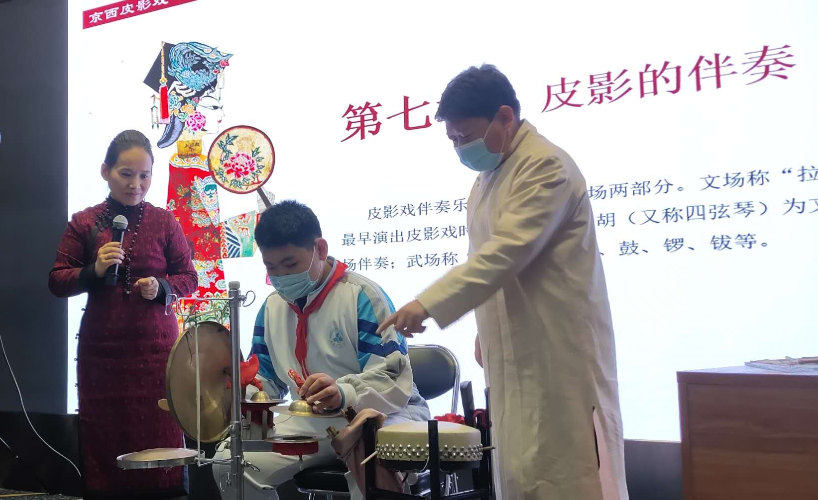 10月26日上午,北京市八一學校第一階梯教室迎來了一位特殊的老師——北京京西皮影傳承人、北京龍在天皮影藝術劇院的院長王熙,她帶領八一學子們近距離感受民間傳統文化中國皮影戲。讓學生了解皮影藝術的歷史起源和製作工藝、製作方法、聆聽流派唱腔、操縱方式等等,學生們在專家指導學生嘗試角色扮演,打擊樂伴奏。