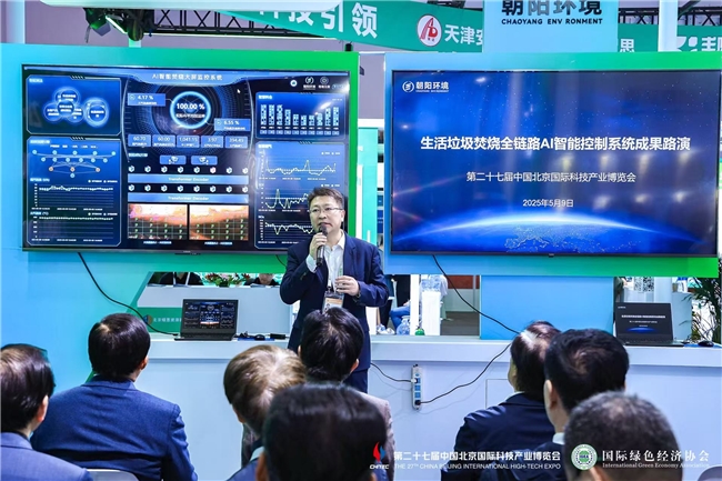 第二十七屆中國北京國際科技産業博覽會5月8日至11日在國家會議中心舉辦,在朝陽環境展廳(國家會議中心一期一層1020展位),通過螢幕,遠端真實呈現北京市首家AI智慧焚燒系統應用,直觀感知全國率先實現多來源、多品類、大規模城市廢棄物園區化協同處理體系與AI智慧焚燒系統的深度融合。