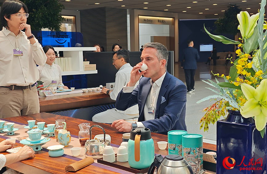 參會者在會場內的文化展示區品茶。人民網記者 孫一凡攝