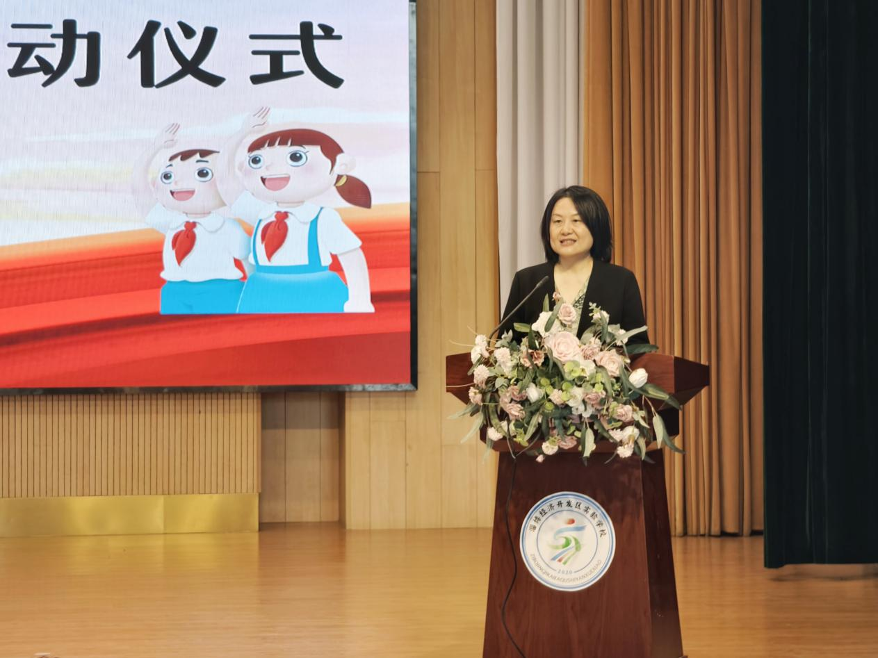 4月16日上午9時,在書香四溢的淄博經開區實驗學校內,2025年“紅讀計劃・書香傳承”暨“悅讀經開”少兒閱讀啟動儀式盛大舉行。此次活動由中國少年兒童發展服務中心與南部生態産業新城發展中心教育文化事業部主辦,青島出版集團、淄博經開區實驗學校、淄博經開區南定小學共同承辦。中國少年兒童發展服務中心媒介與教育部主任季琳,南部生態産業新城發展中心教育文化事業部副主任劉智星、教科研科科長鄒恒,青島出版社有限公司副總經理黃東明等出席活動。淄博經開區各學校校長、"悅讀經開"閱讀推廣人、大隊輔導員及少先隊小骨幹等230余人參加本次活動。