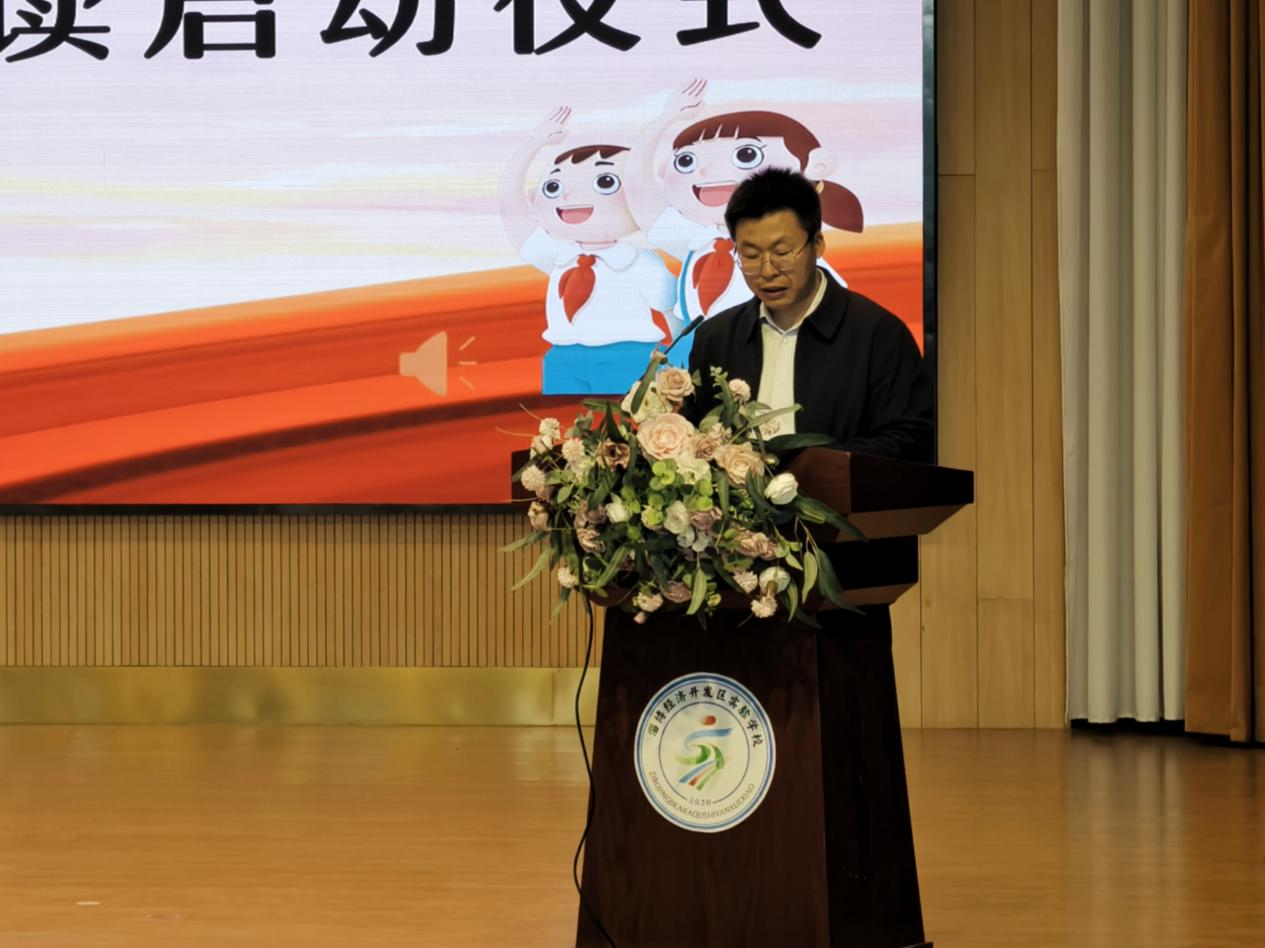 南部生態産業新城發展中心教育文化事業部副主任劉智星在講話中強調閱讀的重要性。他提到,閱讀是文明的接力棒,在知識快速更新的時代,閱讀已成為一種思維方式和生活態度。他鼓勵同學們以書為友,豐盈人生;以書為媒,積極推廣閱讀,將閱讀融入生活,弘揚先進文化。