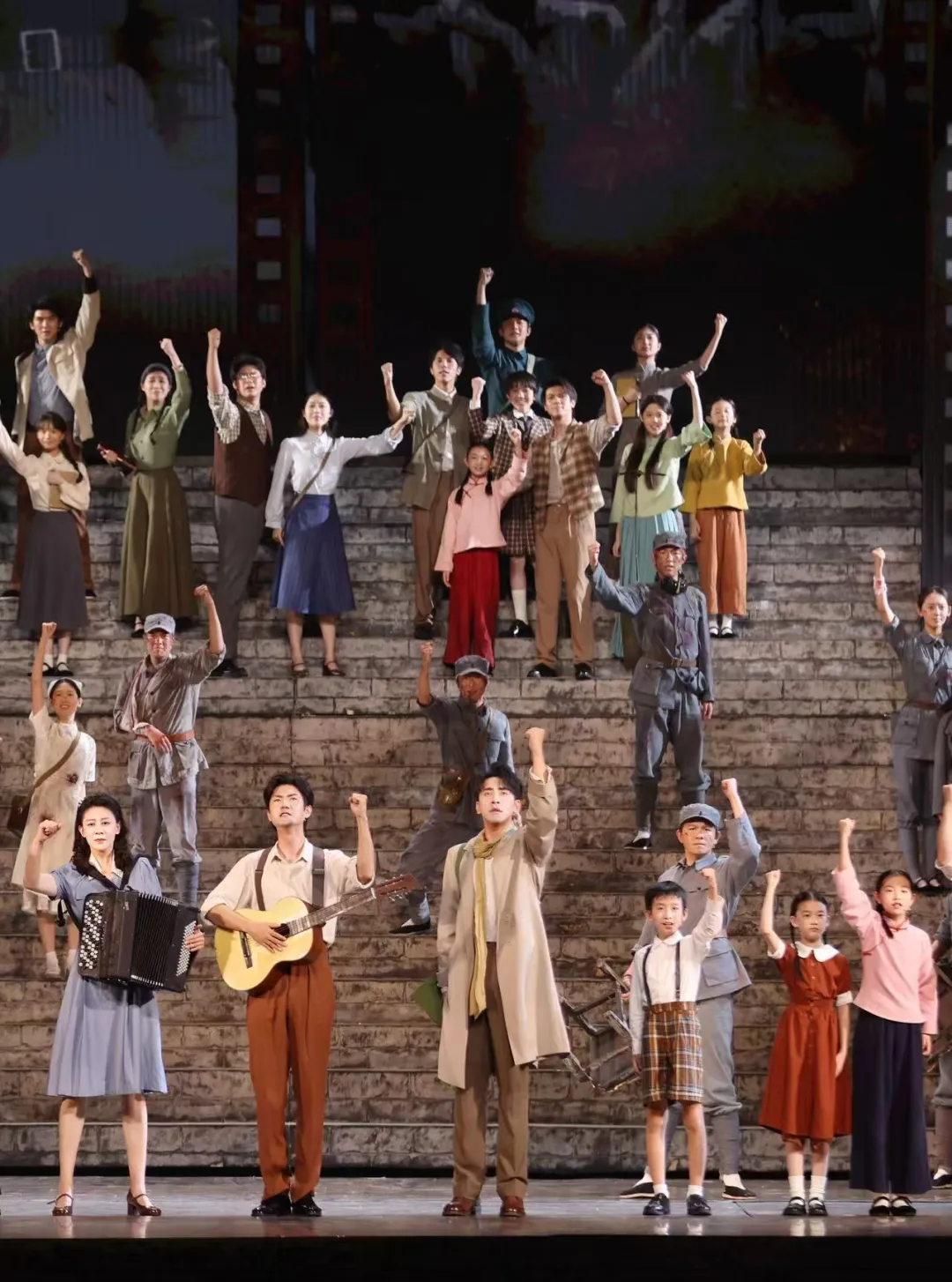 舞臺上,他扮演的“青年畫家”,雖無人物原型,卻像一塊鮮活的“歷史拼圖”,拼湊出當年無數在戰火中堅守的文藝工作者群像。“那時的文藝戰士,從不是孤軍奮戰:可能是在破廟裏就著油燈畫抗戰宣傳畫的學生,可能是在戰壕裏用炭條記錄戰士衝鋒身影的文藝兵,他們以紙筆為‘武器’,以作品為‘火把’,哪怕餓著肚子,也要為同胞燃亮希望。”